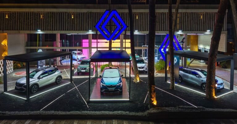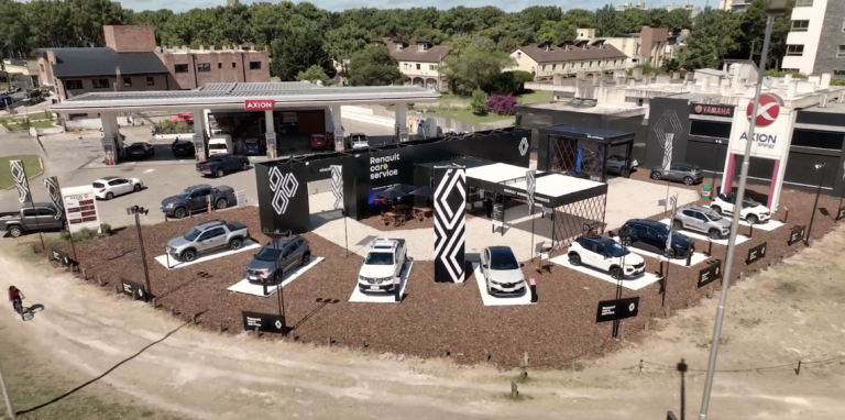 El verano Renault es nuestro territorio desde 2023 hasta 2026. En Cariló diseñamos y construimos un stand de 180 m² donde cada año la marca presenta sus grandes lanzamientos: Megane E-Tech, Kwid E-Tech, Kangoo E-Tech, Arkana Full Hybrid, Kardian y Koleos Full Hybrid E-Tech Esprit Alpine.